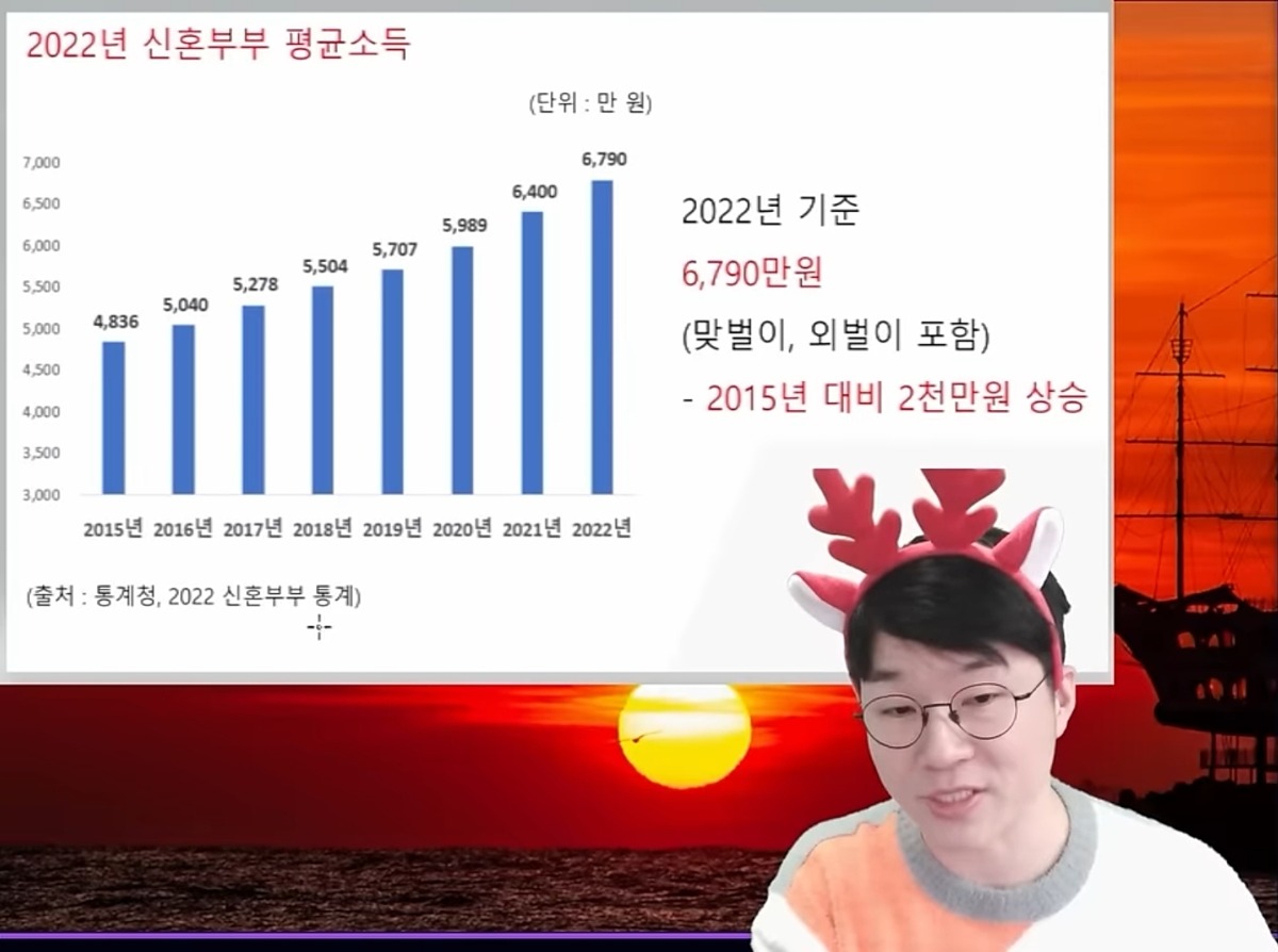 몇년만에 크게 증가한 신혼부부 평균 소득